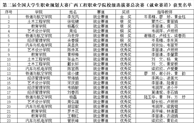 為深入貫徹執(zhí)行黨中央、國務(wù)院關(guān)于促進高校畢業(yè)生就業(yè)工作的戰(zhàn)略部署,進一步強化對大學(xué)生職業(yè)生涯教育的重視與就業(yè)指導(dǎo)服務(wù),提升大學(xué)生的職業(yè)生涯規(guī)劃意識,引導(dǎo)他們盡早規(guī)劃并充分準備未來的就業(yè)之路,以促進我校畢業(yè)生實現(xiàn)更高質(zhì)量、更充分的就業(yè),我校于2024年12月14日成功舉辦了第二屆全國大學(xué)生職業(yè)規(guī)劃大賽的廣西工程職業(yè)學(xué)院校級選拔賽總決賽。