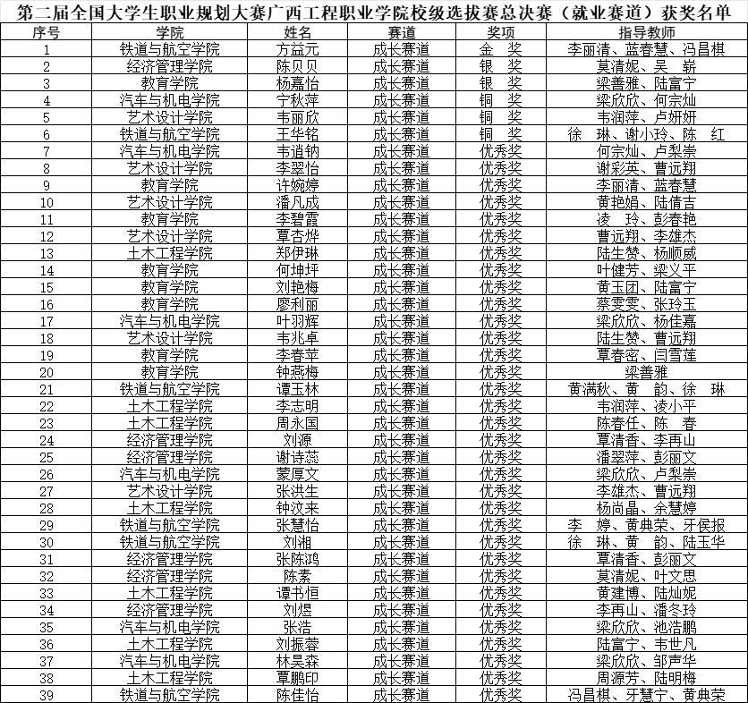 經(jīng)過緊張激烈的角逐,本次大賽最終評選出就業(yè)賽道金獎1名、銀獎2名、銅獎3名;成長賽道金獎1名、銀獎2名、銅獎3名,以及其他優(yōu)秀獎共計50名。