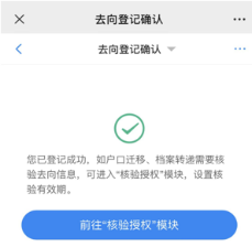 畢業(yè)生核驗授權(quán)后,檔案和戶籍接受管理部門在辦理相關(guān)手續(xù)時,可查詢核驗畢業(yè)生離校時相應(yīng)的去向登記信息。