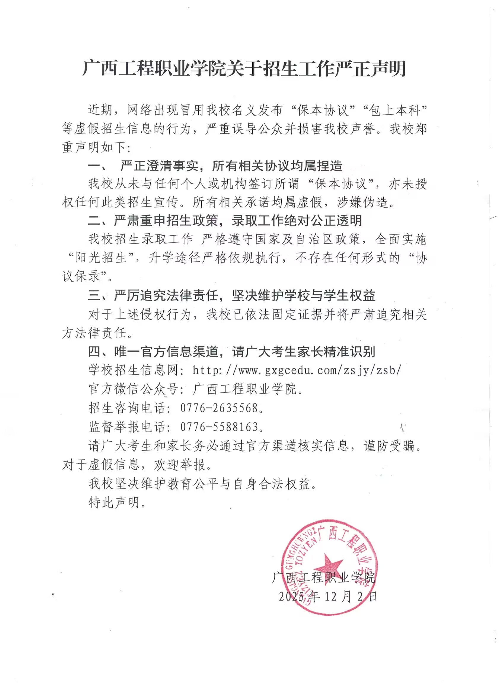 Copyright© 2007.4-2025.4 版權(quán)所有 廣西工程職業(yè)學(xué)院 網(wǎng)站備案/許可證號:桂ICP備08102409號-1 桂公網(wǎng)安備45102302000022 維護(hù):網(wǎng)電中心